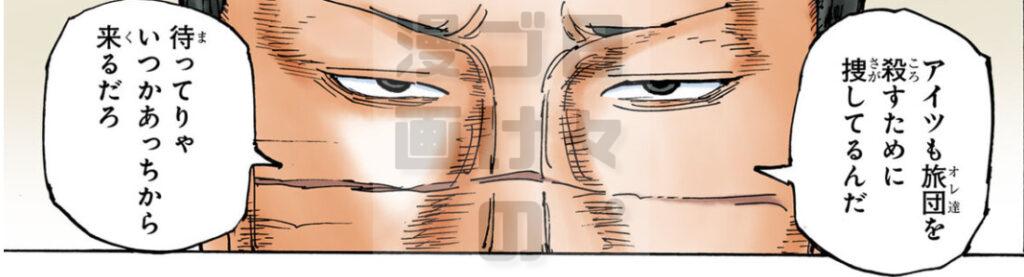 今週最後のページは久しぶりにノブナガ、フィンクス、フェイタンのなかよし3人組が登場。