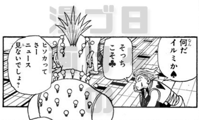 王位継承戦編に入って、ついにヒソカ(本物)が登場しました。