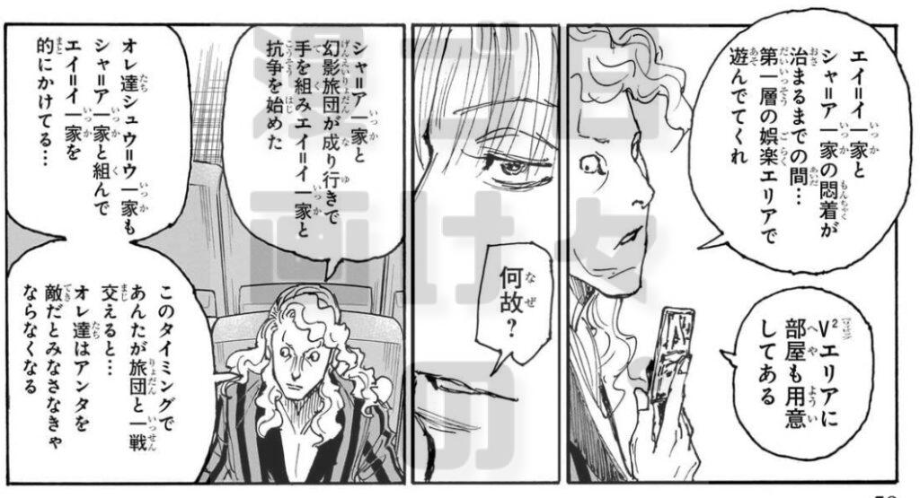 そうなると幻影旅団、エイ=イ、シュウ=ウの3つどもえの争いになってもおかしくないかも。