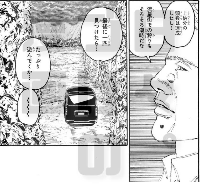 コミックス38巻冒頭で3人組でヒンリギを襲い、尻尾を巻いて逃げた2名がレベルを上げて再登場。