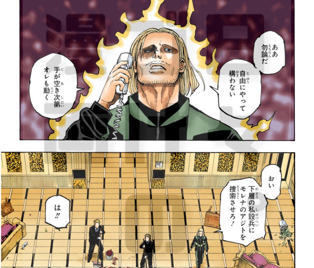 一見すると、クラピカでもカキン王子達でも幻影旅団でもない、マフィア(モレナ)とツェリ同級生組(ボークセン)のやり取りなんてどうでもいいねん…とため息を吐いている読者ももしかしたらいるかもしれません。
