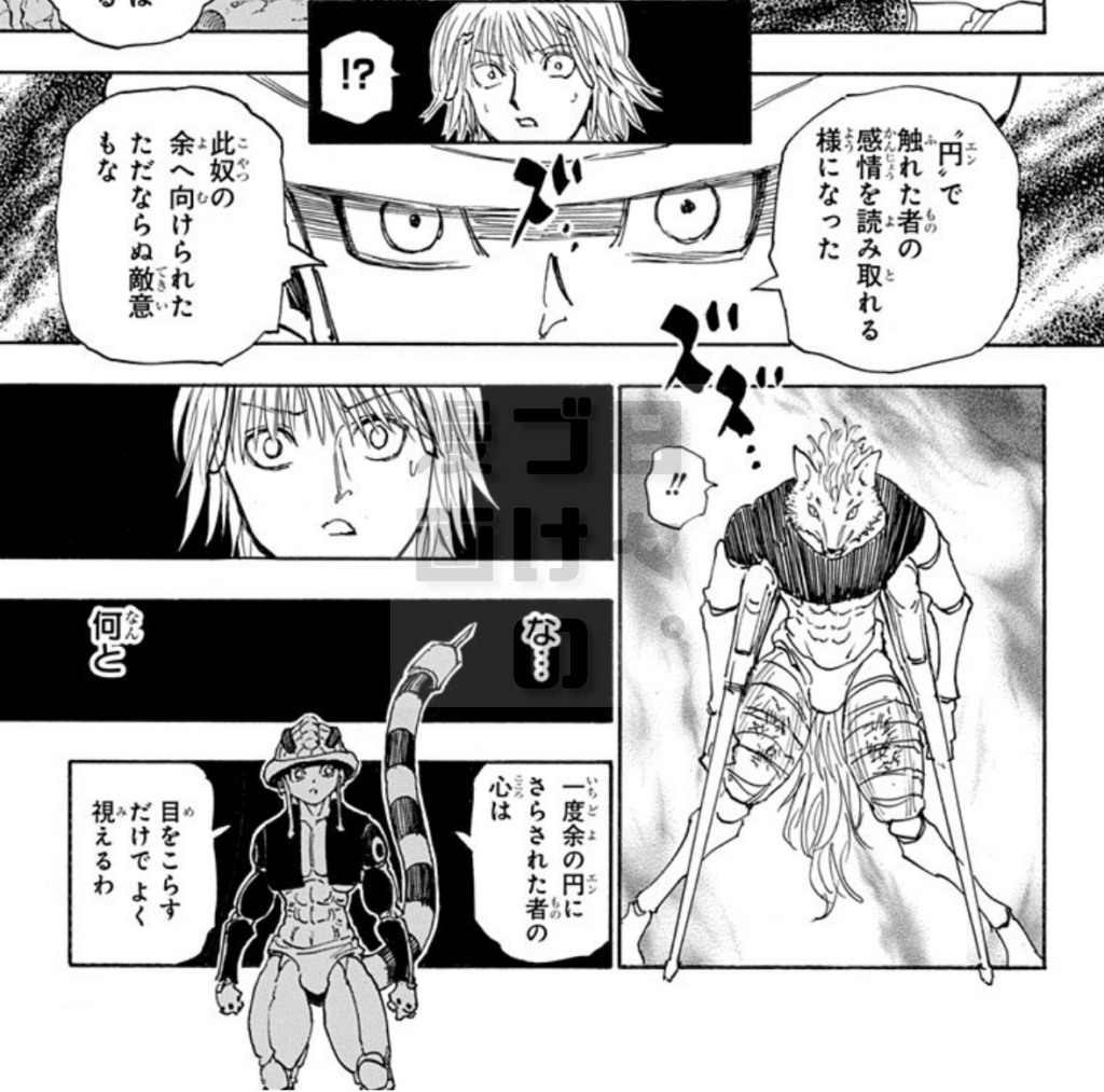 戦闘能力は文句なく作中屈指のキャラクターなので、ここでもやはり強さと”円”の上手さは必ずしも比例はしないということがわかりますね。