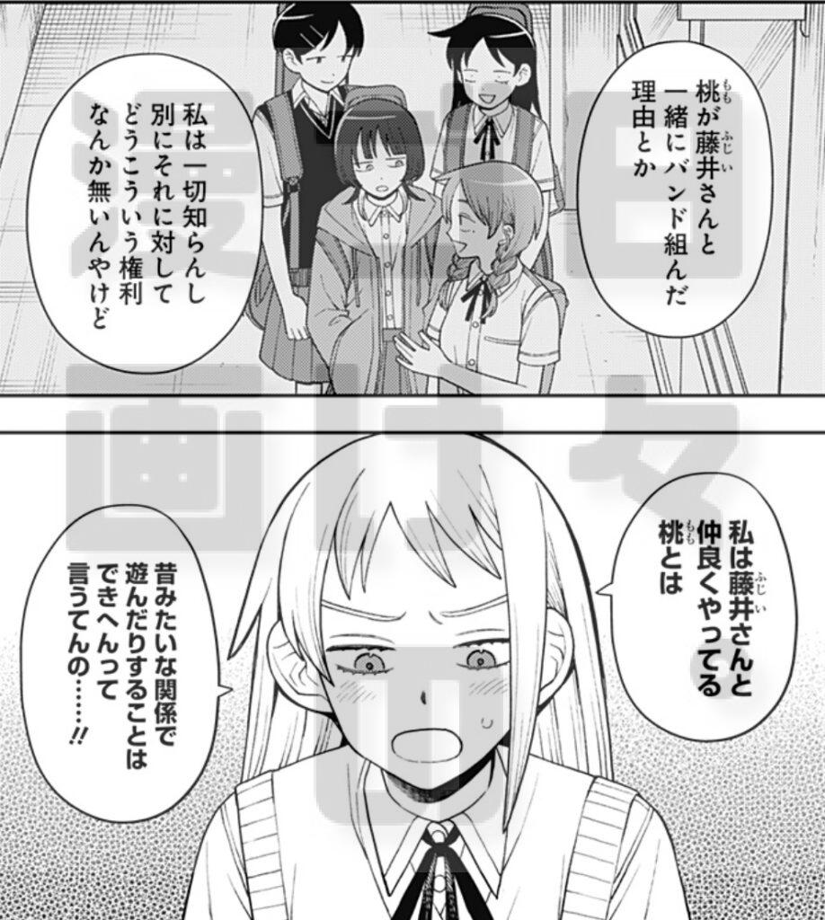 やっぱり鷹見を略奪した(重ねて言いますが実際には略奪ではないのですが)彩目に対してはしこりが残っていて、そんな彩目と桃ちゃんがバンドを組んだことがどうしても受け入れられない。