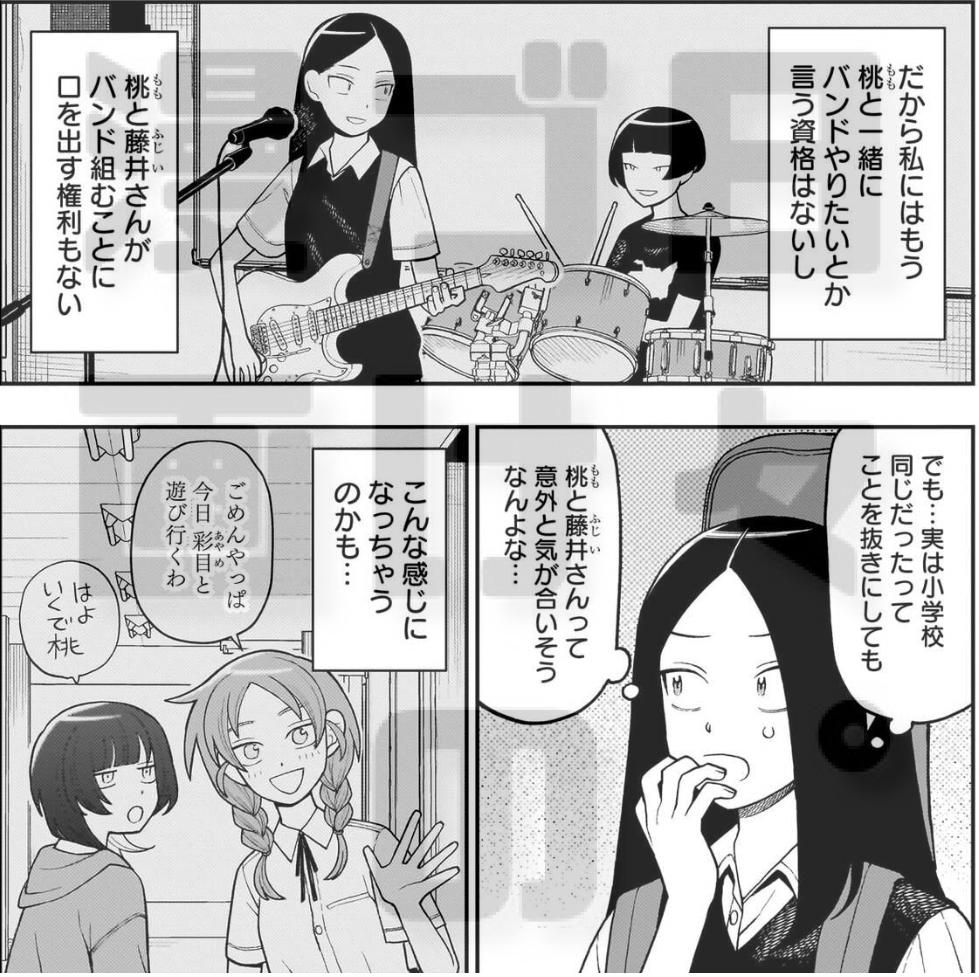 その関係性を知っていて、なおかつ元カレ(鷹見)絡みの因縁が無い大道さんでさえ、桃ちゃんが彩目とバンドを組むことに対していくばくかのモヤモヤを抱えていましたし。