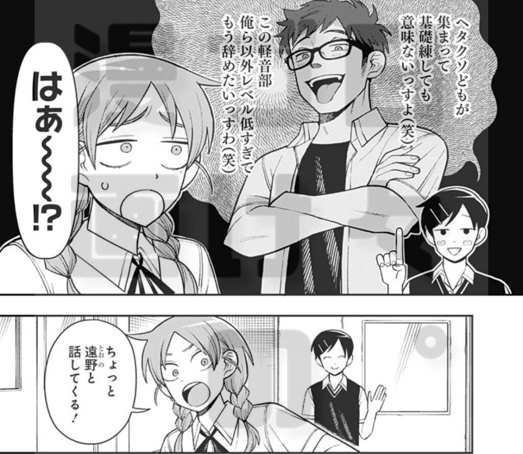 遠野くんがドラムパート練習でプライドだけは無駄に高い先輩方に突っかかった…というところは事実だし桃ちゃんもその場にいたわけですが、ここに遠野くんの証言(もちろん嘘)をひとつまみ笑
