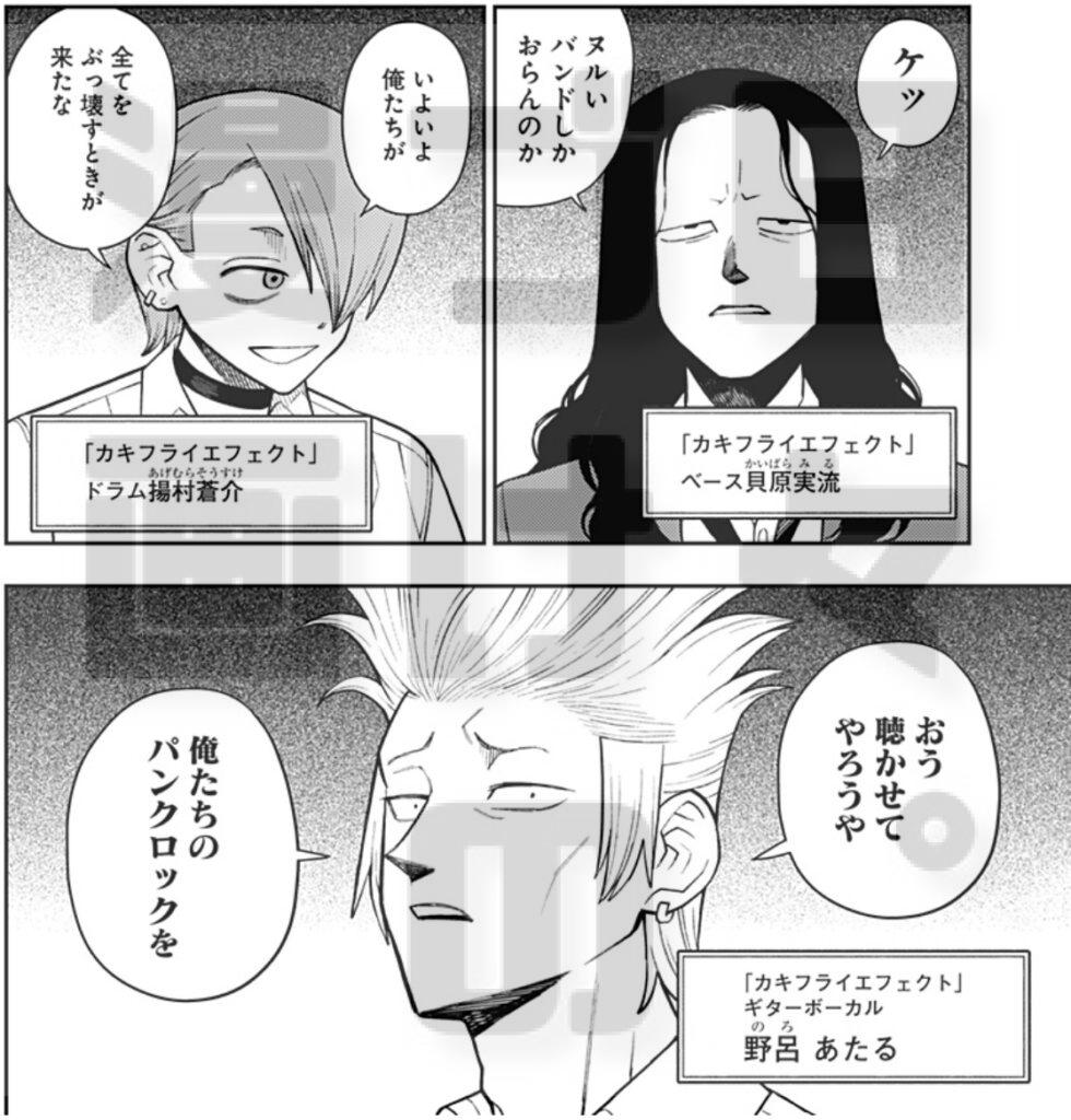 ベースの貝原実流(かいばら みる)くんとドラムの揚村蒼介(あげむら そうすけ)くんが初登場。