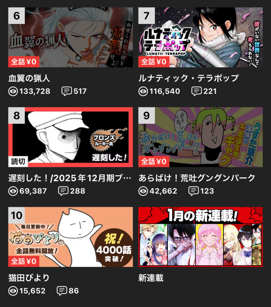 まぁそれは平常運転だけど、ジャンプルーキーの読切にさえ後塵を拝するって…